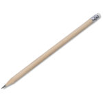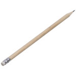 Crayon en bois taillé, finition naturelle, avec gomme.